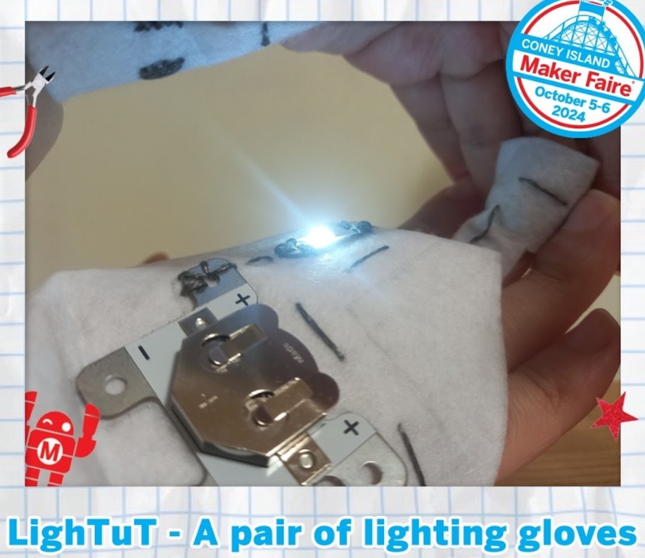 As a maker, I exhibited 'LighTuT', a pair of lighting gloves made with sewable electronic materials. The Coney Island Maker Faire was a huge exhibition that gathers makers, DIY enthusiasts, schools, designers, and craftsmen to showcase or sell their works.